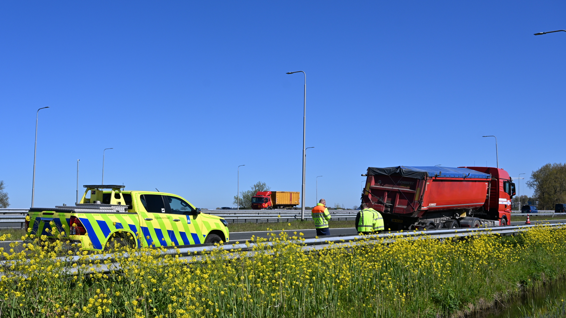 112 PolitieVrachtwagen met klapband zorgt voor verkeershinder op A9 bij Heiloo
