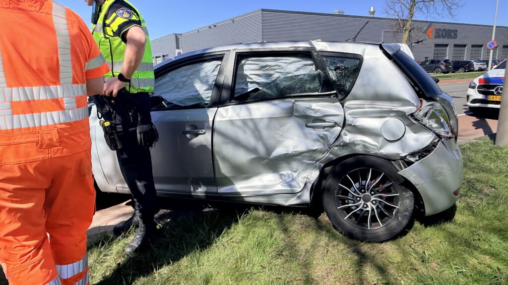 De klap was fors: de personenauto raakte zwaar beschadigd en is door een bergingsbedrijf afgevoerd.